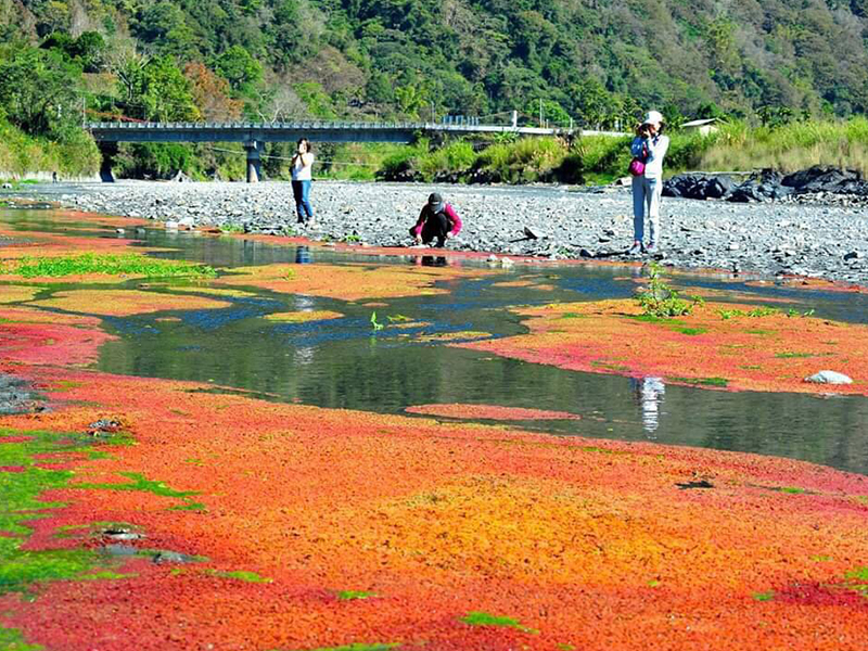 每到冬季,濁水溪水裡會出現紅綠色彩繽紛的景象,即為「滿江紅」,水面上的美麗色彩,接受到大自然的薰染,將河流染成繽紛的色彩,真是引人入勝!