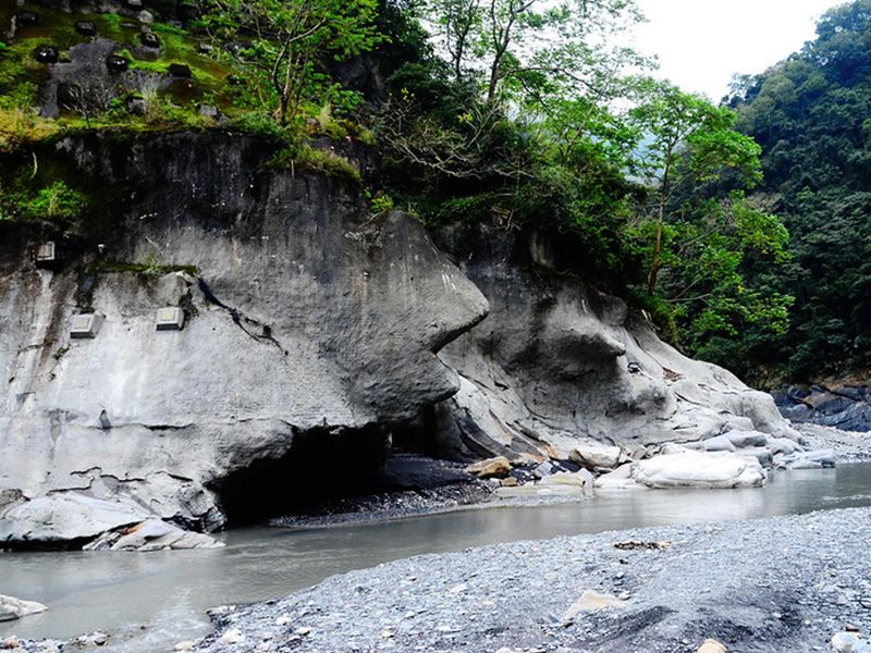 在徒步涉溪走去一線天的路途中,寬廣河床上有著經歷沖刷與風化而形成一塊像是張開嘴的魚頭,也有人稱之為「魚嘴岩」。