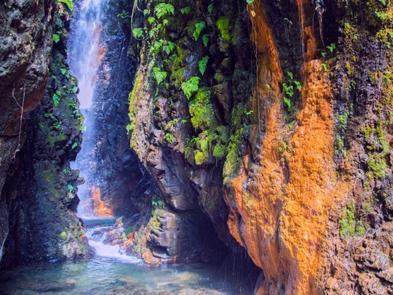 深山溪谷中的迷人景色,湍急水流從高山傾瀉而下的瀑布勝景、橘色的石壁與湛藍的溪水成為一幅優美畫作,親臨現場的人都能感受它的浩瀚美麗,這就是武界部落秘境-拉拉米司瀑布。